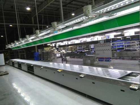 板鏈線原理和皮帶線一致,區(qū)別在于用鏈板連接而成取代了皮帶,較皮帶線的優(yōu)點在于不易磨損,抗沖擊能力大大加強,不易損壞,可以實現(xiàn)較重的產(chǎn)品的運輸。
