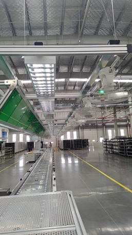 線體采用摩擦輪運輸工裝板,各個摩擦輪之間通過鏈條連接,動力來源于減速電機,線體結(jié)構(gòu)可分為環(huán)形、單層、雙層(因成本考慮一般雙層的下層采用倍速鏈設(shè)計),整線采用PLC控制,方便快捷。
