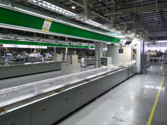 線(xiàn)體采用摩擦輪運(yùn)輸工裝板,各個(gè)摩擦輪之間通過(guò)鏈條連接,動(dòng)力來(lái)源于減速電機(jī),線(xiàn)體結(jié)構(gòu)可分為環(huán)形、單層、雙層(因成本考慮一般雙層的下層采用倍速鏈設(shè)計(jì)),整線(xiàn)采用PLC控制,方便快捷。