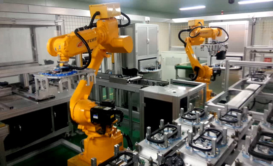應(yīng)用六軸機(jī)械手替代人工取放件,各個(gè)工作站流水作業(yè),從而實(shí)現(xiàn)全自動(dòng)化生產(chǎn),產(chǎn)品只需配備一個(gè)送料人員即可,大的節(jié)省了人工。