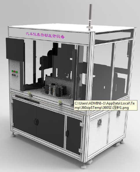 汽車儀表壓針設備采用4軸伺服模組組合形成的龍門式4軸機器人,取針方式采用伸縮式吸嘴+薄片夾緊機構組合而成,滿足取壓針功能,配合機器視覺做精確補償,其優(yōu)勢在于定位精度高,取針穩(wěn)定,可有效的保證壓力值,指針零位以及高度的穩(wěn)定性。
